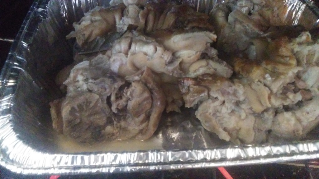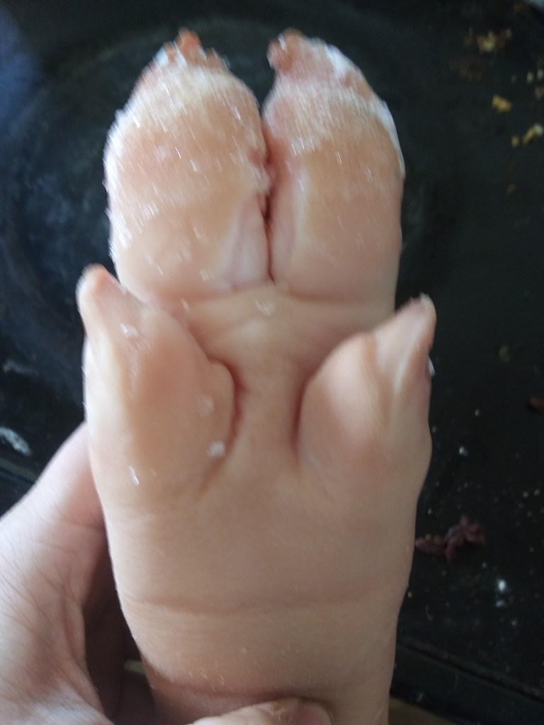 So i cooked this pigs feet several different ways. I first tried boiling it to get it nice and soft. After trying sample it ended up having a similar taste to turkey, but had a fatty texture to it. I decided that that point to try and crisp it up in oven, but despite best efforts it stayed squishy